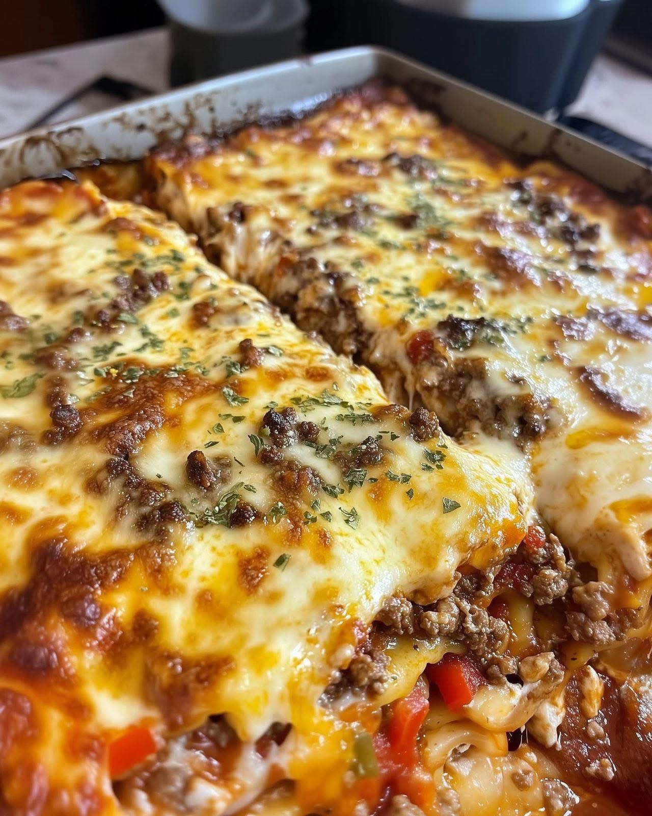 Let the casserole rest for at least 10 minutes before cutting. This allows the layers to set and prevents the cheese from spilling out too quickly.