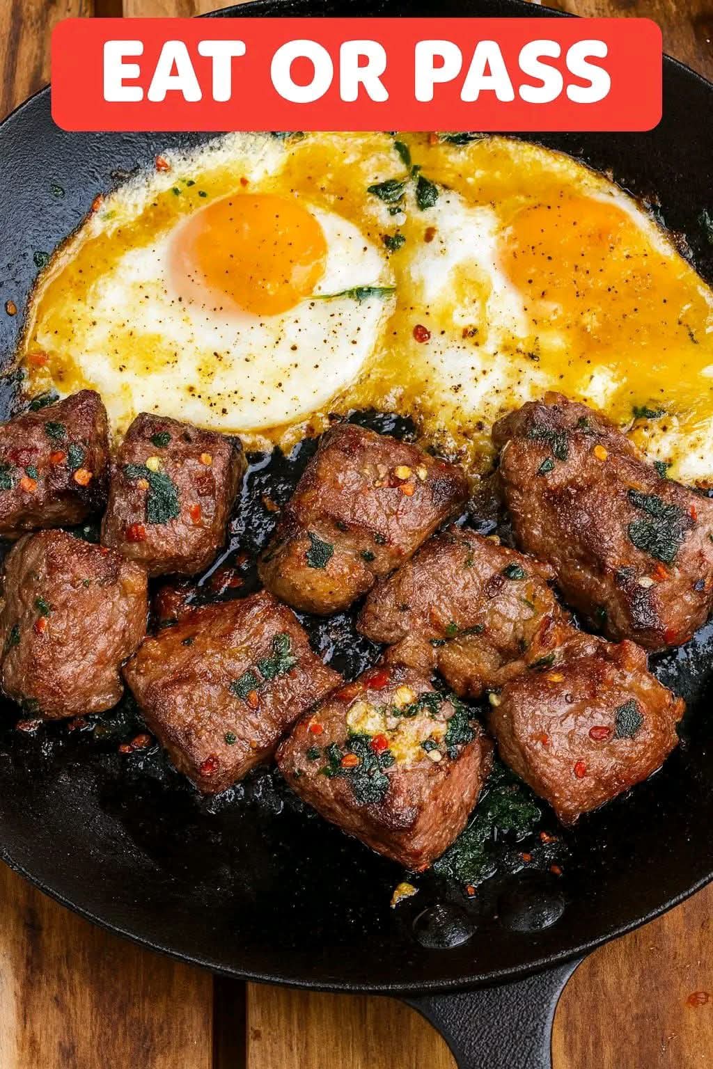 Some meals are impressive without needing fancy ingredients or complicated steps. This dish—tender garlic-butter steak bites served with perfectly fried eggs—is a perfect example of maximum flavor with minimal effort. Whether you want a protein-packed breakfast, a quick lunch, or a satisfying dinner, this skillet recipe will never disappoint. The combination of juicy steak pieces coated in a fragrant garlic-butter herb sauce and golden, crispy-edged fried eggs creates a comforting yet indulgent meal. Below is a complete recipe with detailed instructions and culinary explanations to help you make the best version at home.