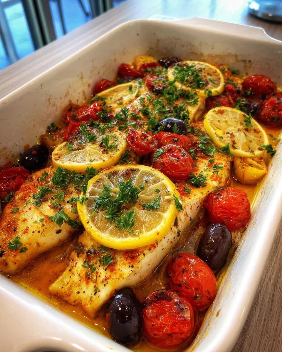 Baked Lemon Fish is a cornerstone of light, vibrant, and nutrient-dense cooking. As captured in your recent culinary images, this dish exemplifies the beauty of Mediterranean-style preparation, where high-quality protein is paired with acidic citrus and briny aromatics. This specific method—often characterized as oven-roasting or poaching—ensures that delicate white fish remains succulent while its natural juices create a built-in pan sauce.
