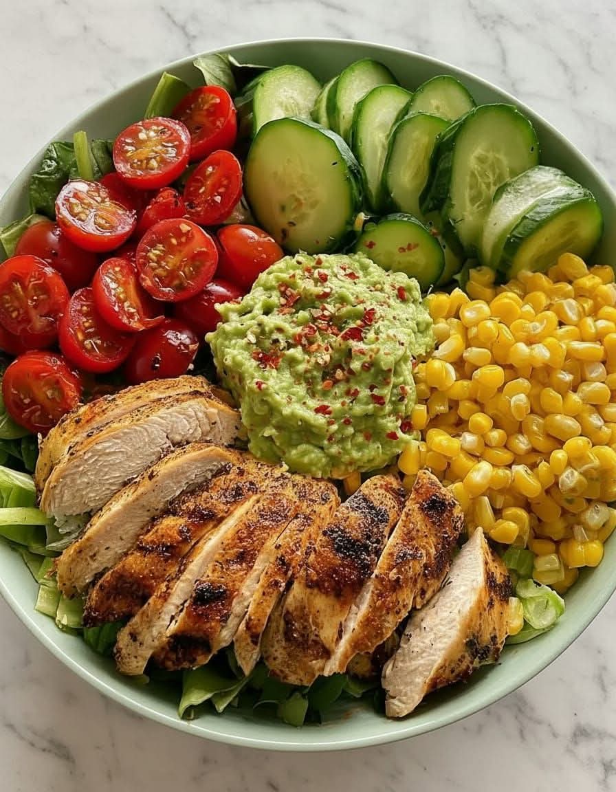 The Fresh Grilled Chicken Veggie Power Bowl with Guacamole, as vividly captured in your culinary collection, represents the gold standard of modern “clean eating.” This dish is a masterclass in the Power Bowl philosophy—a meal delivery system designed to provide a perfect ratio of lean proteins, complex carbohydrates, healthy fats, and high-fiber micronutrients in a single, visually stunning vessel. By combining high-heat grilled chicken with the cool, creamy indulgence of spiced guacamole and the snap of fresh garden vegetables, you create a platter that satisfies the palate while fueling the body for peak performance.