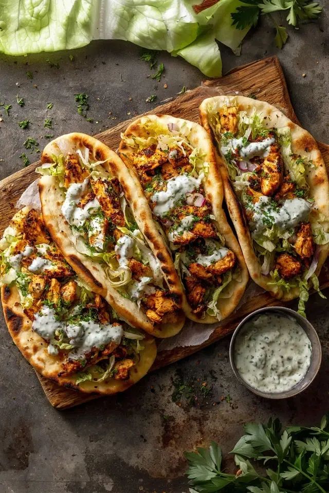 Achieving the professional, street-cart “char” on the chicken and the perfect fluffy-yet-crisp texture of the pitas—as seen in your photography—requires mastery over high-heat convection, dry-rub application, and the science of emulsified herb sauces. This comprehensive guide explores the technical precision, nutritional synergy, and artistic assembly required to recreate this Mediterranean-inspired masterpiece.