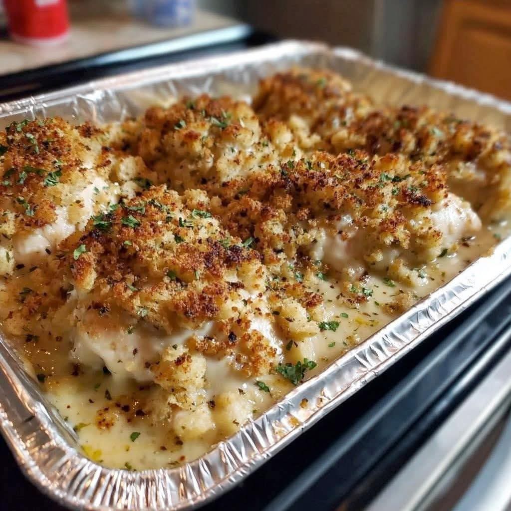 Creamy Baked Chicken with Garlic Parmesan Crumb Topping
