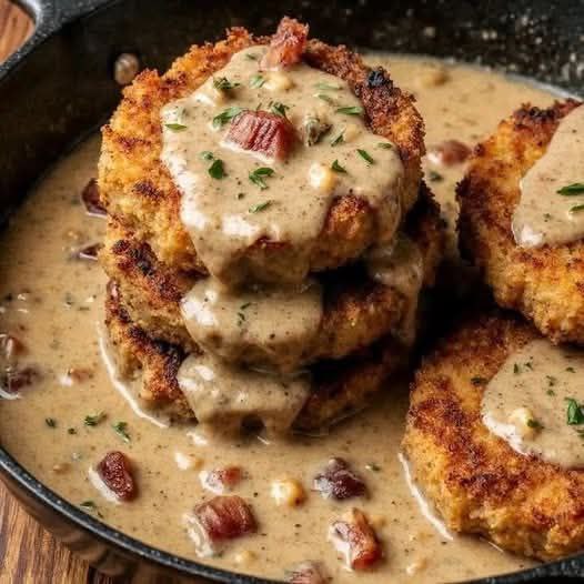 Below is a detailed step-by-step recipe to help you create perfectly crispy country fried pork chops and silky bacon gravy from scratch.
