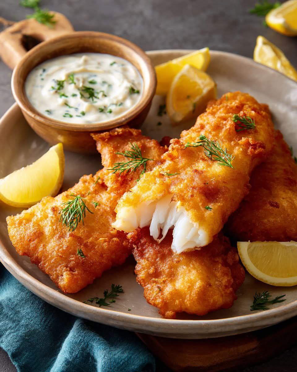 Step 5: Fry the Fish Heat oil in skillet to 350°F (175°C). Fry fillets 3–4 minutes per side until golden brown. 👉 Visual cue: Crust deep golden, fish opaque and flaky inside.
