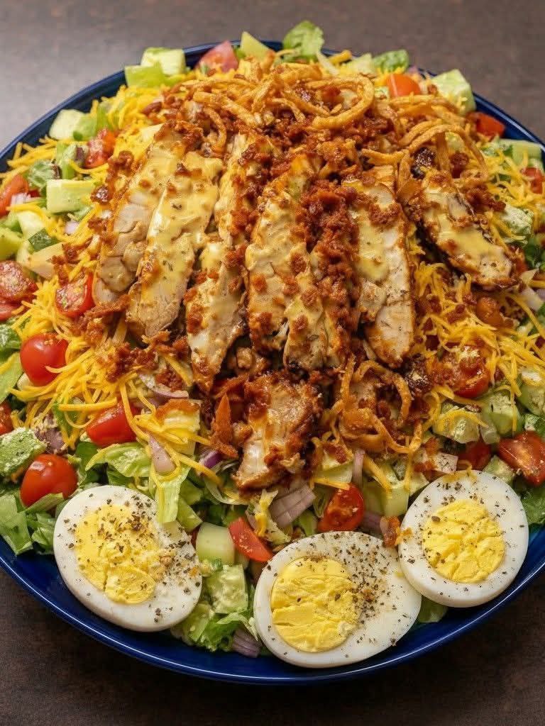 The first time I made this, I treated it like a simple salad—grilled chicken tossed over lettuce. It was fine, but uninspired. The second time, I built it deliberately: marinated chicken, charred corn, ripe tomatoes, creamy avocado, crunchy croutons, and a bold dressing. The result was transformative: every bite offered contrast and harmony. That’s the rhythm this dish demands: patience, layering, and respect for each element.