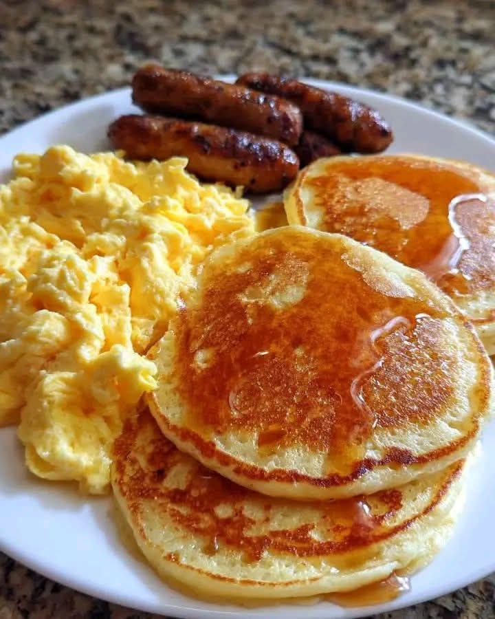 Few meals embody comfort and tradition like a hearty breakfast plate. Pancakes bring sweetness and fluff, scrambled eggs add creaminess and protein, and sausages deliver savory depth. Together, they form a trio that feels indulgent yet balanced, rustic yet celebratory.