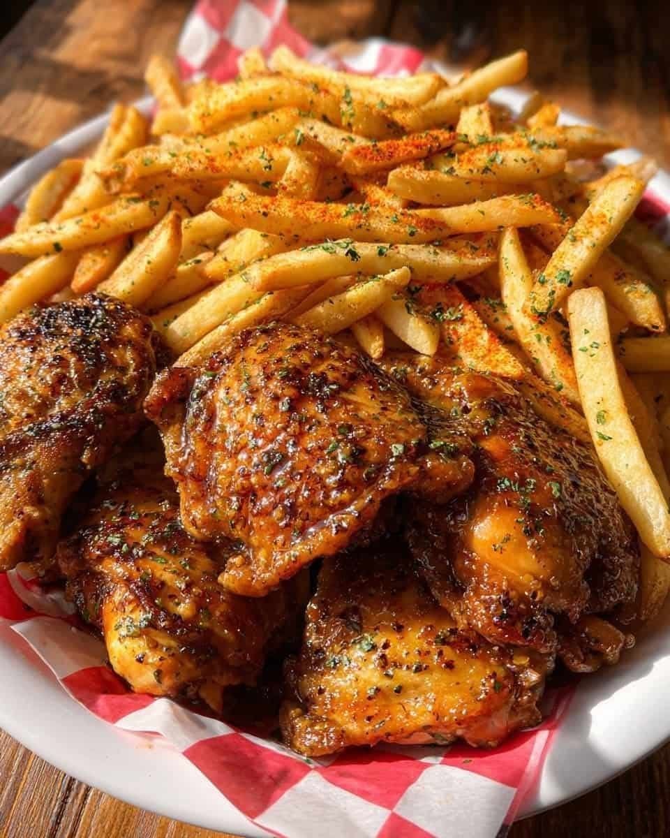 The first time I cooked this dish, I underestimated the glaze. I brushed it lightly, and the flavor barely clung. The fries were under-seasoned, tasting flat. The second time, I simmered the glaze until sticky, brushed generously, and tossed the fries with paprika, garlic powder, and herbs. The result was transformative: glossy chicken thighs, golden fries bursting with flavor, and a plate that felt like a feast. That’s the rhythm this recipe demands: patience, layering, and respect for each element.