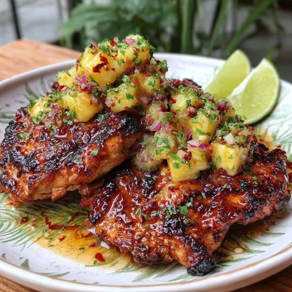 Caribbean Jerk Chicken with Pineapple Salsa is more than a recipe—it’s a celebration of spice and sunshine. Juicy chicken, fiery marinade, sweet salsa. Every bite delivers contrast: smoky, spicy, sweet, tangy. It’s timeless, versatile, and deeply satisfying.