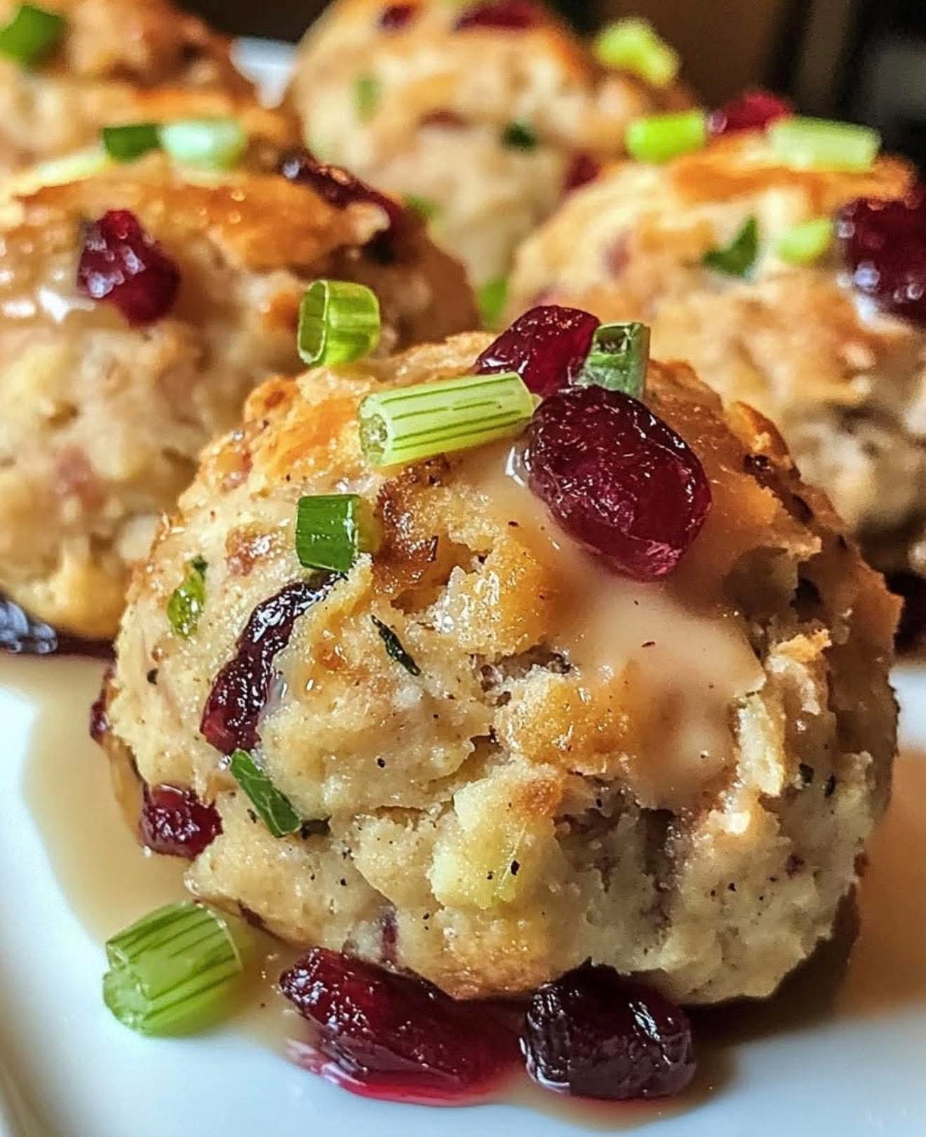 Holiday Cranberry & Herb Stuffing Balls with Gravy